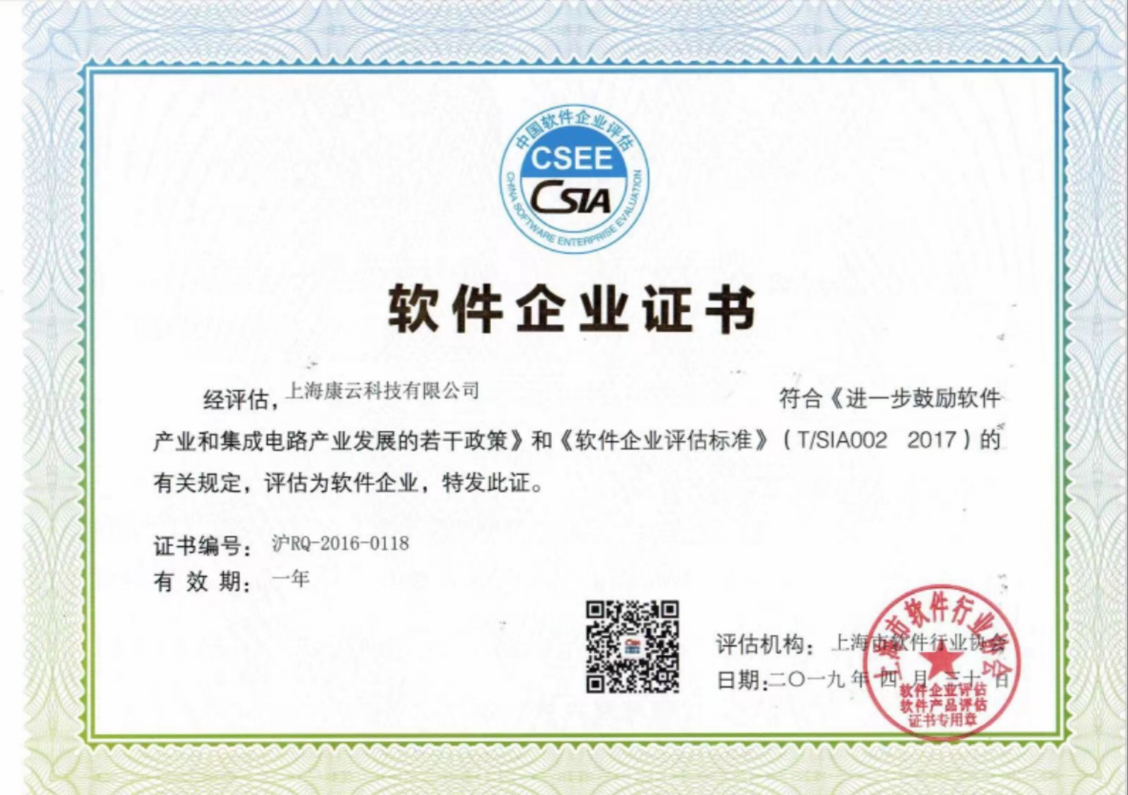 2019年度軟企證書